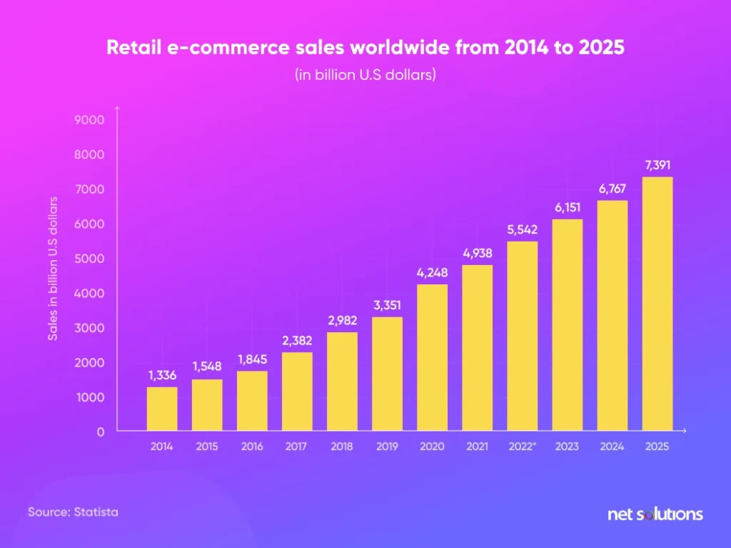 The evolution of the digital commerce industry is powered by its innovative integration of advanced solutions, adaptive technology at its best, and extensive customization. The eCommerce industry is expected to grow further in exponential ways. Look at what the data says: