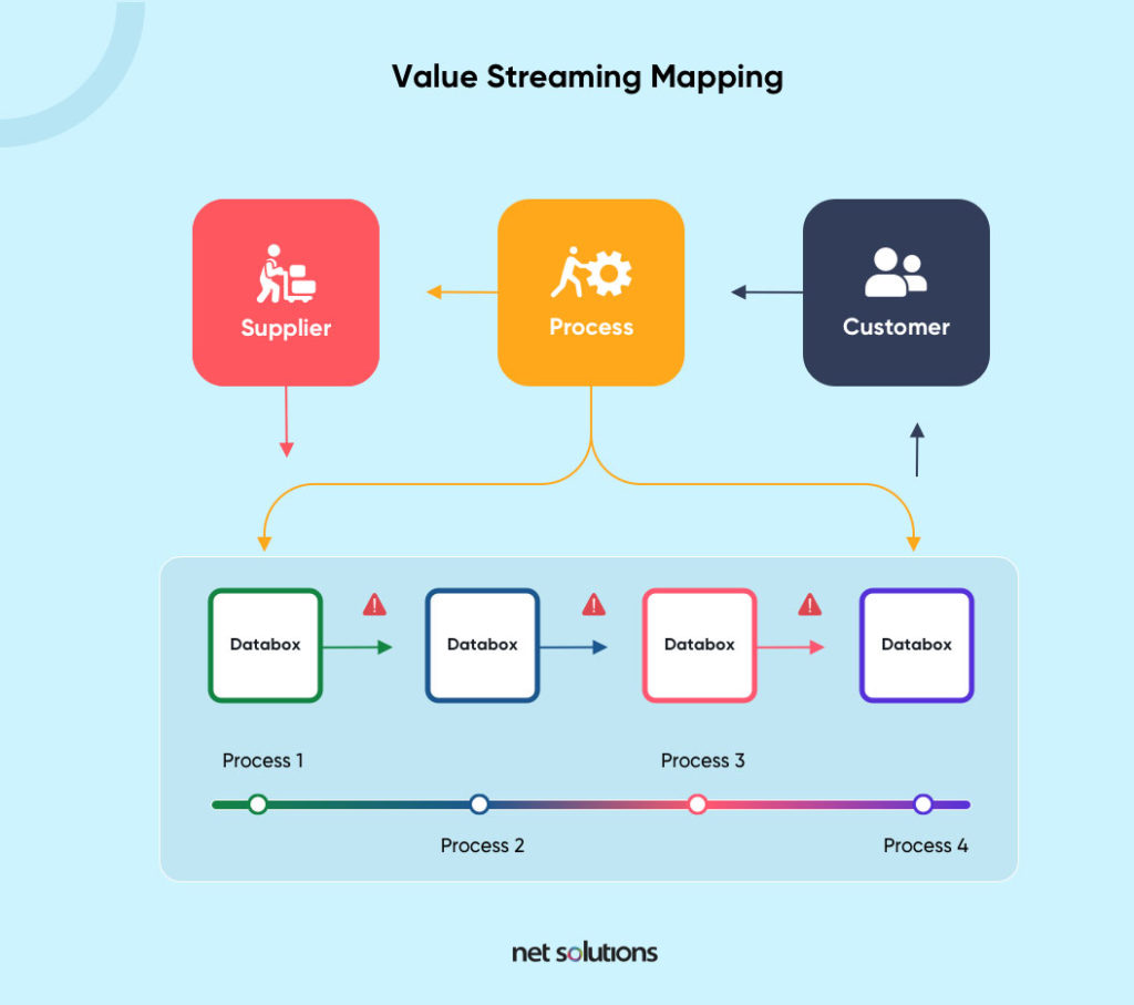 There are several value stream mapping tools available including Ludichart, Plandek, and Smart Draw. Many organizations also leverage project management software to eliminate waste.