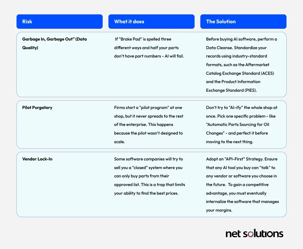 Phase 1: The Diagnostic Foundation (Months 1–3) – Make your data “Machine-Readable.” Audit your current Dealer Management System (DMS). Clean up your parts descriptions and vendor lists.