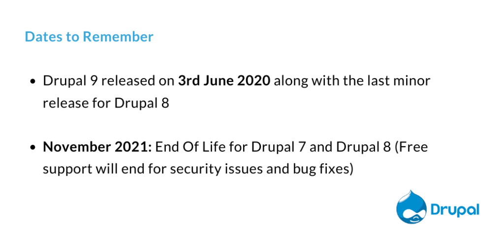 Moreover, Dries appeared in a webinar with Acquia on 12th May and mentioned that “Drupal 9.1+ is where future innovation happens,” paving the way for faster and better performance of websites. Well, Drupal 9.1 update is not so long, too — just six months after the release of Drupal 9. Till then you can still enjoy the powerful features of Drupal 8/9: