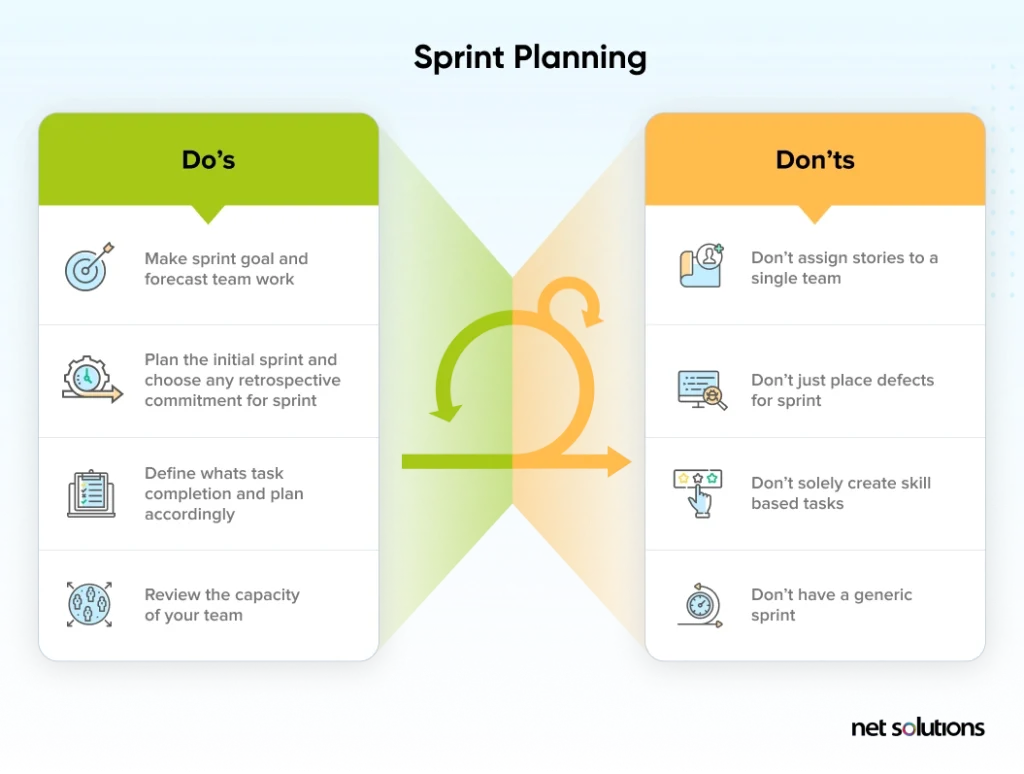 At Net Solutions, we emphasize heavily on sprint planning. We break down each item into minor parts so that each sprint provides practical customer value. It also helps our teams correctly estimate the development time. We also track each sprint with agile metrics like a burn chart to improve planning accuracy and chances of achieving the set goal.